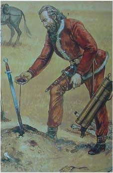 Til venstre: En højbåren kvinde fra Sarmaterne baseret på en grav fundet ved Sokolova Mogila ved Nikolaev, Ukraine. Graven er dateret til 1. århundrede e.Kr. Kvinden var 45-50 år gammel og graven var så rigt udsmykket at kvinden ofte beskrives som en dronning. Til højre: En konge af Aorsi-stammen under en ofring på sletten. Der gives en fuld beskrivelse af det arkæologiske grundlag for afbildningen i afsnittet "Jólnir – Julens Herre - Julemanden". Kilde: Gerry Embletons fantastiske streg fra R. Brzezinski & M. Mielczarek: The Sarmatians 600 BC – AD 450” (2002, s.26-27).