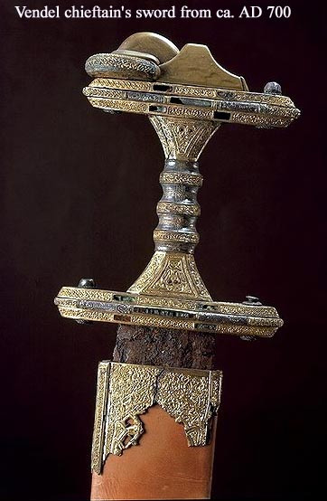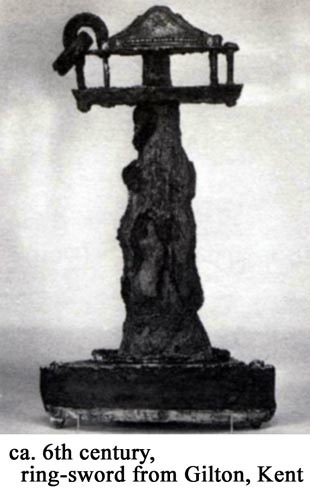 Kilde: Hilda Ellis Davidson ”The Sword in Anglo-Saxon England, 1998 (s.177). Fra www.heorot.dk Til højre: Ringgrebsværd fra Odessa State Museum of Archaeology, Ukraine. Denne type sværd er fundet mange steder omkring Sortehavet og på sletterne i Ungarn. Sværdene var 50-60 cm lange og var i brug i området i tidsrummet 100 f.Kr. – 100 e.Kr. Folkevandringerne forklarer hvorfor de forsvinder ud af historien fra Sortehavet og dukker op i Ver Asir/Danir -folkets landområder. Bemærk at ringgrebsværdet fra Odessa er 100% identisk til ringgrebsværdet fra koppen fra Himlingøje. Kilde:Brzezinski & Mielczarek: The Sarmatians 600 BC – AD 450 (2002, s.33)