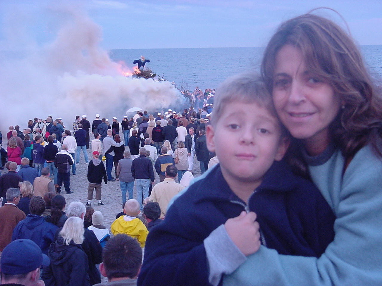 Ofringen ved Sommersolhverv på stranden ved Marielyst sommeren 2004. Som Gisela og Christian antyder var vejret mildest taget køligt, og det har uden tvivl altid været tilfældet. Ofringen ved Sommersolhverv har netop tjent det formål at være en ofring til Solen. Solen har derfor takket for ofringen ved at bringe godt vejr i juli/august måned. Tidl. MF Arne Melchior holdt i øvrigt båltalen og forsøgte forgæves at overbevise Danerne om at Skt. Hans ikke er en hedensk skik. Over 500 mennesker rystede samtidigt på hovedet vel vidende at han netop i et radioprogram havde forsøgt at tale for at vor nationalsang skulle afskaffes da teksten bekræfter at Danmark er Freja ’s Sal. Bålet skal tændes (elda-görð) ved solnedgang med enten ”nødild” (naudäld/gnideld/neidfire/nedfire), dvs. ny ild skabt ved gnidning af to stykker egetræ mod hinanden. Ordet ”nød” skal opfattes fra det det oldnordiske ”nautr”, der har mange betydninger, herunder ”kvæg, nydelse, brug, staldbroder, værdifuld fælle”. Hávamál (vers 68) forklarer os at ilden er at regne for en af vore mest værdifulde fæller. Samtidig henviser ordet til at ny ild ligeledes blev benyttet for at afværge kvægpest, og at der skulle gå hundegalskab i tamdyr. Alternativt kan bålet antændes med ”vild ild” (villieldr/vådeild/vådeld/váðaeldr/löpeeld), dvs en ild ikke antændt af mennesket, der ligeledes regnes for ny ild 1. Brugen af "ny ild" skyldes at det er en purung ætling der ofres under Liða. Som vi derfor ser Balder knyttet til Grand Danois hunden som hvalp i Baldrs Draumar/Vegtamskviða (Ældre Edda), skal det ligeledes være nyfødt ild, der antænder bålet og selve ofringen. I nødstilfælde kan man gøre brug af fyrtøj (eldfæri/eldvirki/æledfýr). 1 Troels Frederik Troels-Lund (1840-1921): Dagligt Liv i Norden i det sekstende Aarhundrede (4. udgave, 1914-15, VII Bog: Aarlige Feste) Völuspá (vers 32, Ældre Edda): Ec sa baldri blodgom tivor odins barni or log | folgiN stóð vm vaxiN vollo heri miór oc mioc fagr mistilteiN. | | Jeg så Balder blodgjorte gud, Odin’s barn, urlovene følgende. Stod fuldvoksen slettens hær. Tynd og smal den fagre mistelgren. |