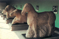 Min oversættelse til nudansk Med andre ord; Hunnerne sidder "på kvindevis" eller i "lang sadel" under felttog og under angreb. Vi kan ikke se hvorfor Marcellinus mener at Hunnernes heste blev anset som "deformibus" (misdannet), men det er klart set i forhold til de romerske heste. Mit bud er at "misdannelsen", set med romerske øjne, skyldes at hestene er fysisk mindre end man var vant til i den romerske ridehær. Fra vore Edda ved vi at jætten Narf havde en datter, der hed Nat. Hun fik sønnen Dag. Nat og Dag fik hest og vogn og blev sat på himlen for døgnet igennem at drage rundt om Jorden. Nat kører foran med hesten Hrimfaxi (dvs. rim(frost)-manke). Dags hest hedder Skinfaxi (dvs. den skinnende (heste)-manke). Disse beretninger er direkte videreførelser fra Rig Veda . Odin har naturligvis Sleipnir (”Slipper” dvs. ”den der slipper væk”), der faktisk kun har fire ben. Hesten får først langt senere i forbindelse med begravelsesritualet otte ben. Dette er behandlet i afsnit ”Begravelse – ligbrænding i skib ”. Stamfaderen til Sleipnir var hesten Svadilfari. Fra Þórgrímsþula ved vi at Frey har hesten Blóðughófi (blodige hove). At Frey’s hest har blodige hove skyldes, jvf. Skírnismál (vers 9, Ældre Edda) at denne mare/hoppe rider hen over Skærsilden i rejsen fra denne til den næste verden – fra Sommersolhverv til Vintersolhverv. Det er den rensende ild der gør hovene blodige. Balder har en hest, der fik Baldersbrønde (ikke byen af samme navn) i Roskilde til at springe frem under hoven, Sigurd har hesten Grane, gudinden Gna har hesten Hofvarpnir, og Heimdall har hesten Gulltoppur. I afsnittet ”Den Hvide Hest og Danerne” viser jeg hvorfor kongens hest altid har været og symbolsk skal være hvid. Fra Gylfaginning i Snorre Edda har vi flere navne udover de der allerede er nævnt ovenfor: Glaður (Glad (dansk og engelsk)) Gyllir (Gylden, Golden (engelsk)) Glenur (Glanende/Stirrende, The Starer (engelsk)) Skeiðbrimir (Rap-jager, Fleet Courser (engelsk)) Silfrintoppur (Sølvtop, Silver-top (engelsk)) Sinir (Senede, Sinewy (engelsk) Gils (Pilen/Strålen, Beam/Ray (engelsk)) Falhófnir (Behåret hove, Hairy-hoof(engelsk) Léttfeti (Letfodede, Light-stepper (engelsk)) For flere heite og navne på heste se Snorre Edda (Skáldskaparmál,72. Hestaheiti). Sidst, men ikke mindst, har vi Solvognen dateret til 1350 f.Kr., og fundet i 1902 i Trundholm Mose i Odsherred, Sjælland. Der har med andre ord været vildheste i Norden flere tusinde år før vore forfædre ankom. Vildhesten har også været gjort tam. Det viser Solvognen må have været tilfældet, som den er fremstillet med bidsel etc. Der er intet i vor viden om hestens udvikling der kan forhindre os i at konkludere at hesten udspringer fra Asien, og at den blev udbredt som tamdyr af de indoeuropæiske folkeslag i takt med udvandringen fra den indoeuropæiske vugge øst for Tanais-floden. I ”Bilag Z: Det oprindelige år nul og betydning” viser jeg at vi i vor grundlærdom mener at dette skete i det der svarer til år 6676 f.Kr. Afhængigt af om dyrerne der trækker de 4-hjulede stridsvogne på Standarden fra Ur er heste eller ej kommer hesten til Mesopotamien fra nord enten 2600-2400 f.Kr. eller senest i perioden år 1749-1595 f.Kr. Assyrerne opfinder hestens overlegne funktion som kavalerihest år 670 f.Kr. Hunnerne har denne viden, og dette giver kineserne store problemer. Under Han dynastiet år 115 f.Kr., muligvis med hjælp fra Wu-sun folket (Ver Asir/Danir), udvikler kineserne sit eget kavaleri, eller benytter os som lejesoldater, som forsvar mod de evindelige angreb fra Hunnerne. Folkevandringerne fra Asien/Midgård ; først Kelterne, så Goterne og til sidst os , bringer hest og kavaleri med til Norden. | Hest der tramper på en Hunner (skulpturen kaldes på mandarin ”galloperende over en Xiongnu”). Fra Det historiske museum i Xi’an. Hestene på billedet er fra hærchefen Huo Qubing’ s grav nær Xi’an og gjort på ordre af Han-dynastiet’s Kejser Wu-di (år 141-87 f.Kr)efter Huo Qubing’s død, 23 år gammel år 117 f.Kr.. Huo Qubing (140—117 f.Kr.) var leder af den kinesiske hær under Han-dynastiet der besejrede Hunnerne. Under hesten er afbilledet en person med ”skipperskæg” som vi tidligere har vist er identisk med Hunnerne. At det er hesten der dræber Hun-krigeren, og ikke en kriger fra Han-dynastiet’s hær, viser med al tydelighed, at det var hesten der var afgørende for sejren. Hesten skal her forstås som dels hesten alene, der af kineserne kaldes ”himmelske heste” som følge af deres betydning for sejren, men også introduktionen af kavaleri, der blev givet Han-dynastiet af Wu-sun folket (Ver Asir/Danir ) som en del af den indgåede alliance. Det er iøvrigt bemærkelsesværdigt at kinesere ikke er afbilledet i forbindelse med denne sejr. Kan det betyde at det måske var Wu-sun folket, dvs. os, der var leje-soldater for Han-dynastiet under slaget, og derfor ikke skulle afbilledes i mindesmærket? Der må være en god mulighed for at oprindelsen til vore tidligste heste i Norden, dvs. Dølehesten og den islandske hest , kan føres direkte tilbage til den ovenfor afbillede hest. Den viste hest er 168 cm høj (målt fra hoved til hov) og 190 cm lang og er nok gjort i skalaen 1:1. Stanghøjden målt ved mankekammen på den islandske hest idag er 125-145 cm og for Frederiksborghesten 160-169 cm. Kilde: Bent Hansen fra Guangzhou, Guangdong der tog billederne på Det historiske museum i Xi’an og gav mig oplysningerne om figurerne fra museet. Skånske Lov fra år 1200-28 e.Kr.1 siger: ”Stoþhorsum allum ok uillum horsum skal ær þæm a uarþæ ok gømæ, sua at þe kumma æi i akre ok æi i ængia andra manna fran pingizaftæn ok til mikialmissu aftne” eller ”Alle hesteflokke og vilde heste skal disse [op]varte og gemme, så at de kommer ej i ager og ej i eng anden mands fra Pinseaften og til Mikkelsmesse aften” Denne sætning i Skånske Lov’s straf
