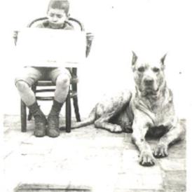 Admiral og stabschef for den samlede spanske flåde (Al jefe del Estado Mayor de la Armada española, almirante) Fernando Meléndez Bojart (1900-1968), som dreng nær La playa de las Canteras, Kanarieøerne. Billedet er fra ca. 1904, og viser den nu uddøde Alano-linje i Spanien. Hunden er visuelt identisk til hvad Edward Jesse (1780-1868): Anecdotes of Dogs (1846) viser og kalder “Cuban Bloodhounds”. Dr. H. (einrich) G.(ottlieb) Ludwig Reichenbach (1793-1879): Der Hund in seinen Haupt- und Neben-Raçen (Leipzig, Verlag der Expedition des Naturfreundes, 1835, s. 7) kalder samme for: 228-229. Der Cuba-Hund, cubanische Dogge. C. mastiv. cubanus. Le Dogue de Cuba. The Cuban mastiff. Von der Insel Cuba, wahrscheinlich aus Bullenbeisser und englischer Dogge entstanden. Hunden blev formentlig bragt fra Spanien til Cuba for at indfange bortløbne slaver på de spanske sukkerplantager. Heraf opstår den noget anderledes forståelse for ”blodhund”, der normalt betegner en hund der opsporer vildt med sin lugtesans.