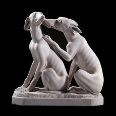 En kosmetik-palet kaldet "Hunde-paletten" (The dogs palette), udstillet i Rum 20 på Louvre Museet, Paris. Fundet i Øvre Egypten langs Nilen i Hierakonpolis. Fire store, ekstremt muskuløse, hunde i mastiff type angriber byttedyr. Ørerne ser ud til at være gjort runde med et særligt formål for øje, og gengiver derfor muligvis ikke nøjagtigt hvorledes hundene så ud. Måske skal vi opfatte det som at de angribende hunde er "årvågne" under jagten. Ørerne er dog absolut identisk til hvorledes vi finder dem på den Afrikanske Vildhund (Lycaon pictus, Hyænehunden), der har en Mankehøjde på 75 cm, og derfor er en meget stor jagthund, selvom den kun vejer ca. 36 kg. Måske er de viste hunde tæmmede Afrikanske Vildhunde. Dateret til år 3500-3200 f.Kr.