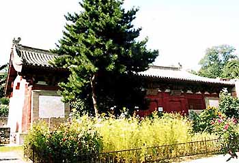 Foguang Templet, 30 km fra Tai Huai, Kina. Dateret til nogenlunde samtidig med Nan Chan Si, dvs. 7-900 tallet e.Kr. og igen et eksempel på et tempel gjort i træ. Vi genser igen de to beskyttende drager på toppen af gavlen, identisk til placeringen på norske stavkirker. Tagudhængets krumbøjning er igen langt mindre end vi ser senere.  |