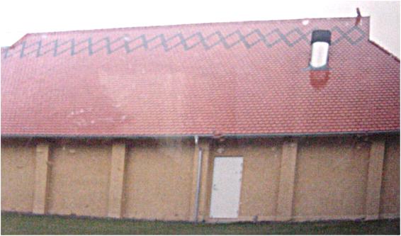 Billedkilde: www.karasjok.kommune.no/files/samiskskoleportal/skoleportal/0-web/norsk/05-01lavvu.htm Knuthenborg, Lolland’s nye hal. Efter min mening et af verdens flotteste tage, gjort helt i vor oprindelige stil med tagudhæng og tækket med spån. Vi kan vort virke endnu. Billederne taget en våd regndag juli 2004. |